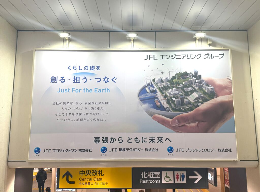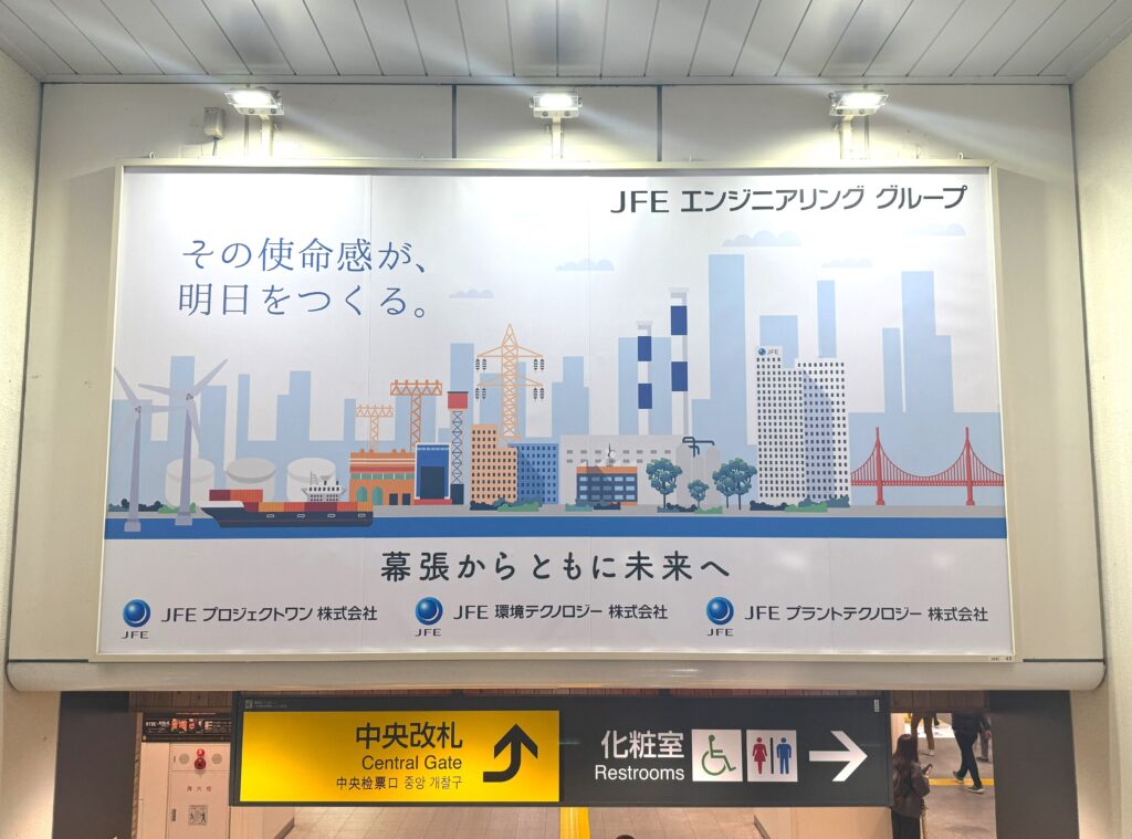 海浜幕張に本社があるJFEエンジニアリンググループ合同で駅構内に広告を掲出いたしました。海浜幕張駅にお寄りの際は是非ご覧ください。